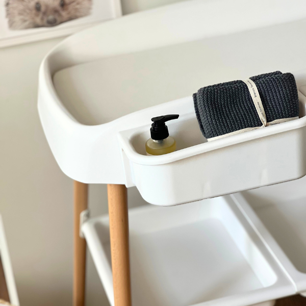 Ample Storage: With two storage containers on the side, a handy side pocket and two large storage areas below, Mabel has plenty of tidy storage space for wipes, nappies, creams and all your baby-changing essentials.